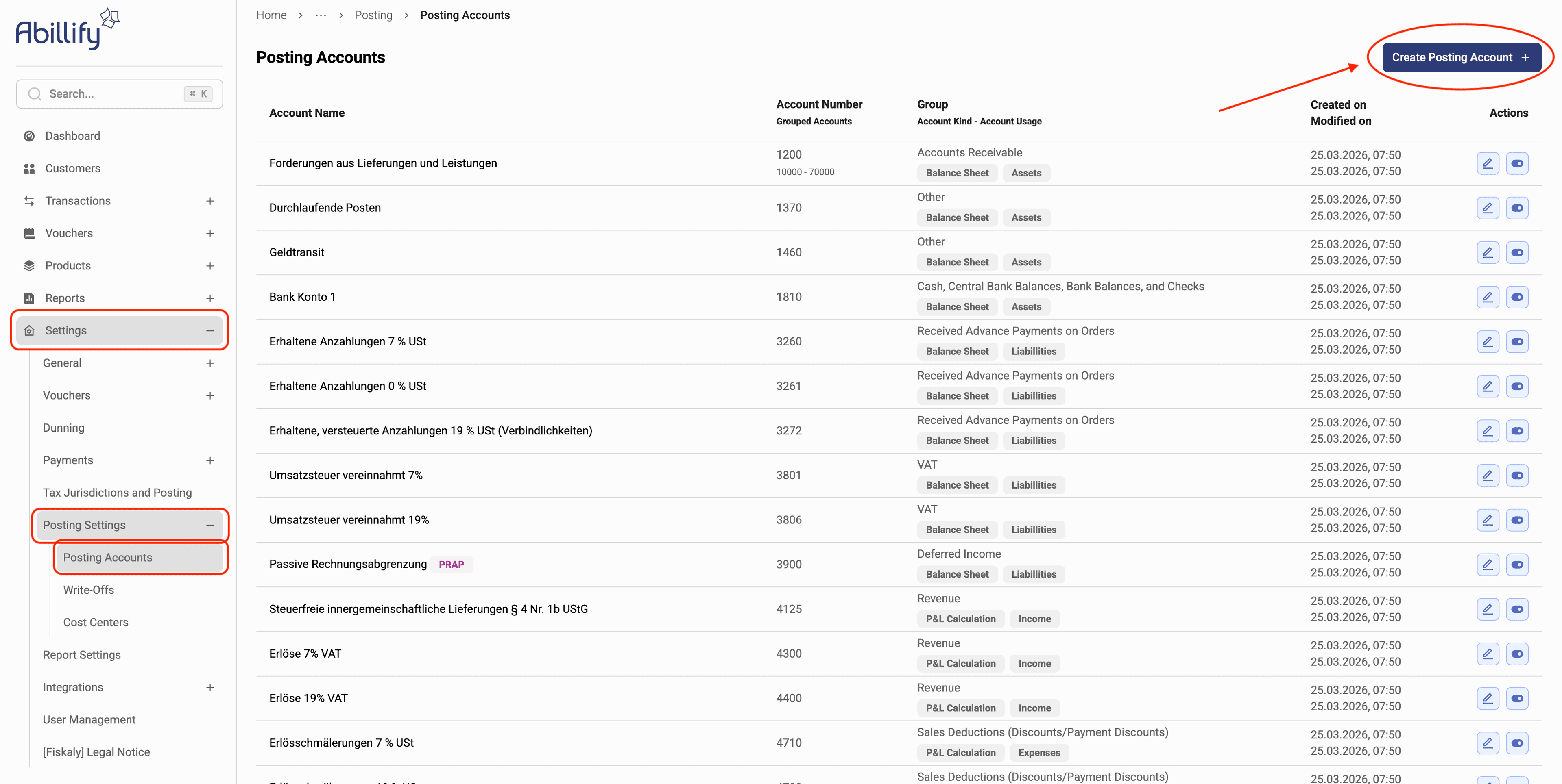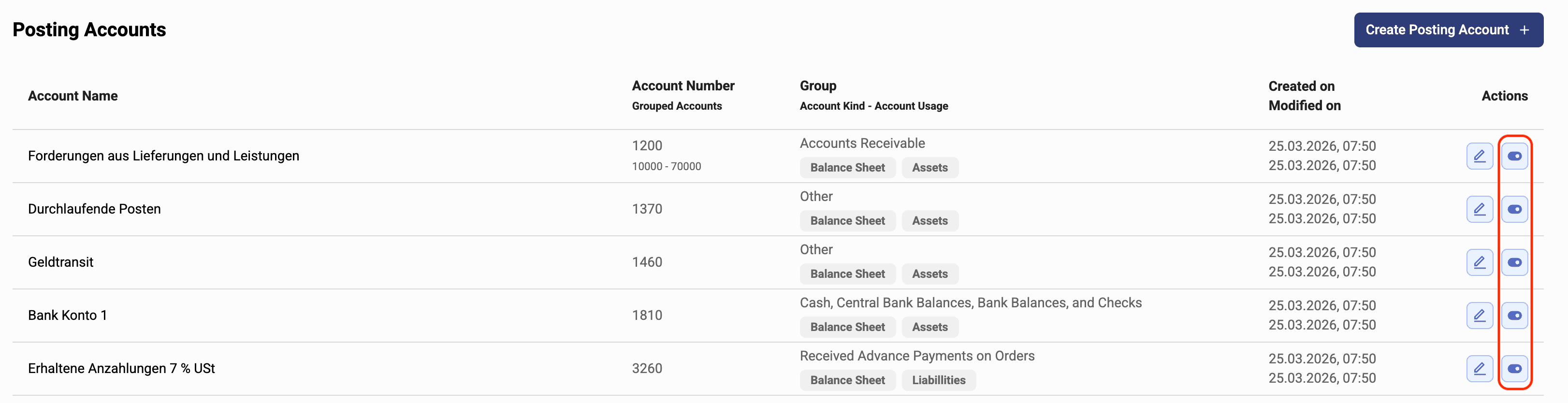 Creating, editing and toggling posting accounts
