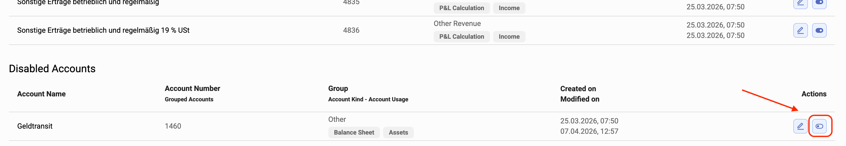 To (re-)enable an account, look for the account you wish to (re-)enable in the Disabled Accounts list and click the Enable Account button.